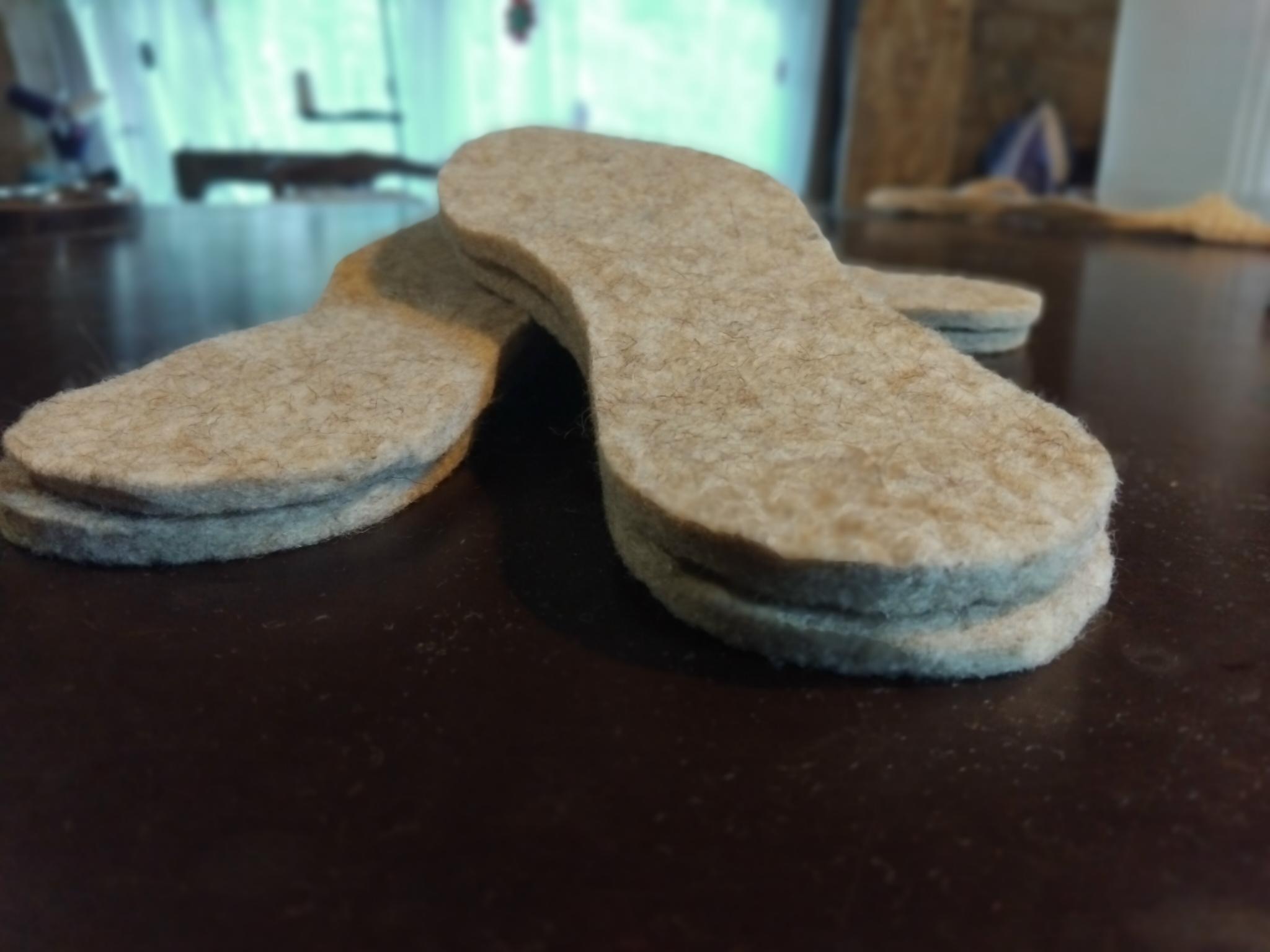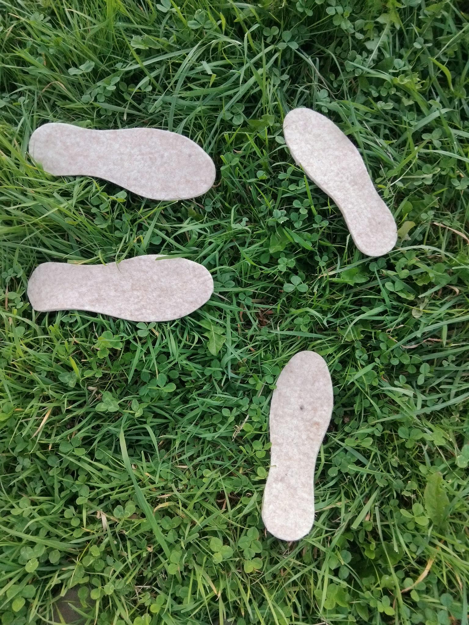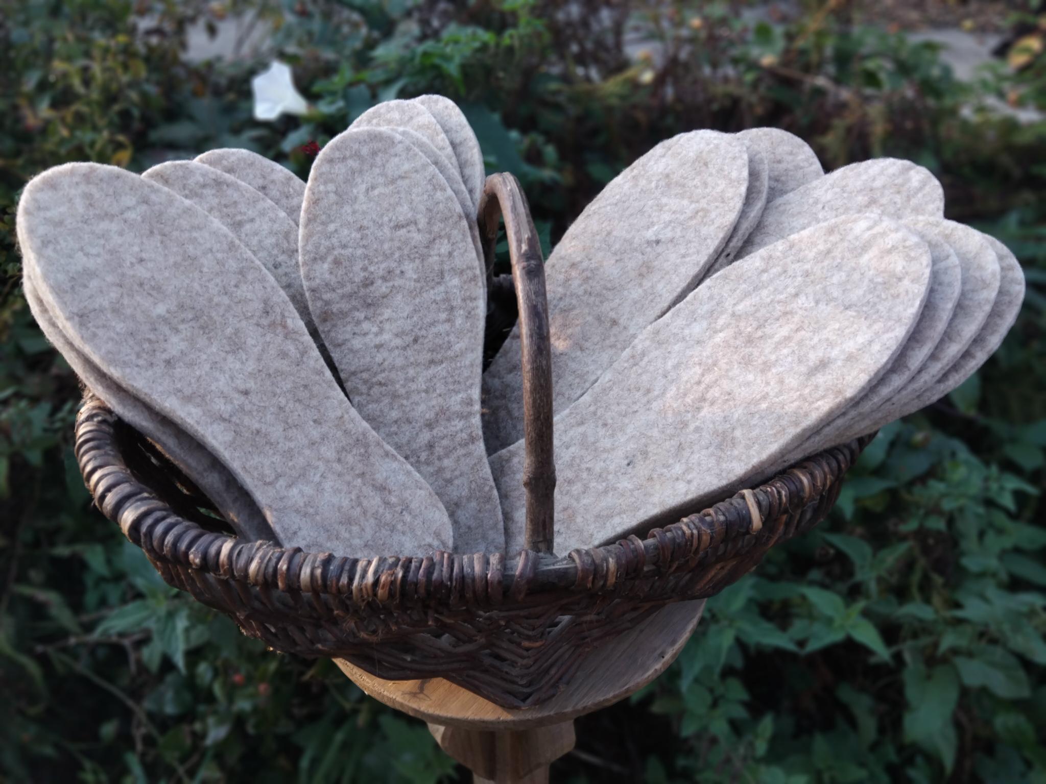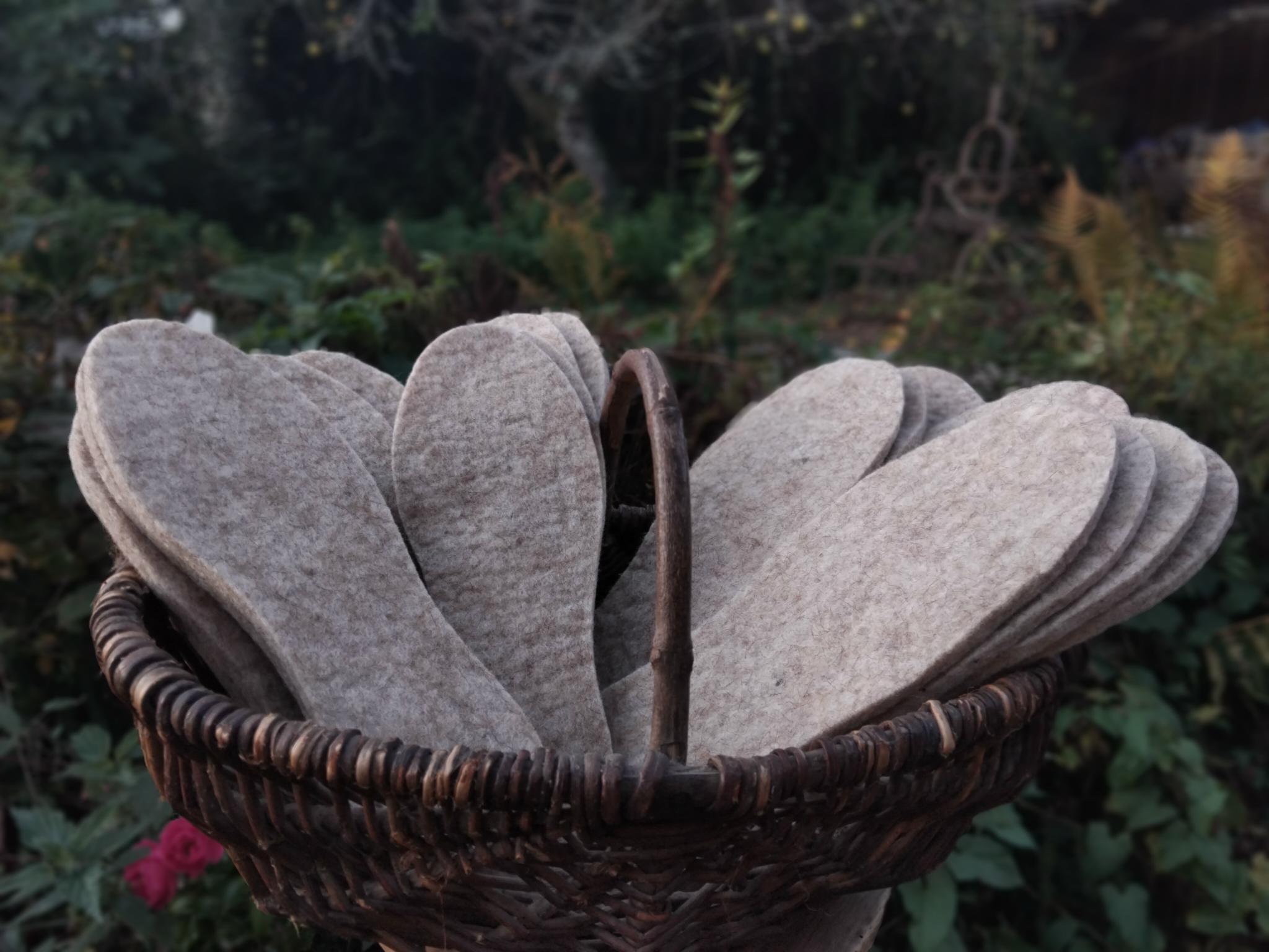 Semelles 100% laine de nos brebis solognotes, 100% Minez-du/Montagnes Noires, Disponible de la pointure 38 à 44. Epaisseur : 6 mm.